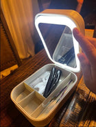 Le miroir intelligent pensé pour la femme moderne. Son éclairage LED tactile haute luminosité révèle chaque détail de votre beauté avec une précision professionnelle, transformant votre routine maquillage en moment d'excellence. Grâce à son système de rangement intégré révolutionnaire, il organise tous vos essentiels en un seul endroit, fini le chaos et les minutes perdues à chercher. Compact, pliable et portable, il vous accompagne du dressing au voyage d'affaires. Un design premium qui allie fonctionnalité et élégance pour sublimer votre quotidien.