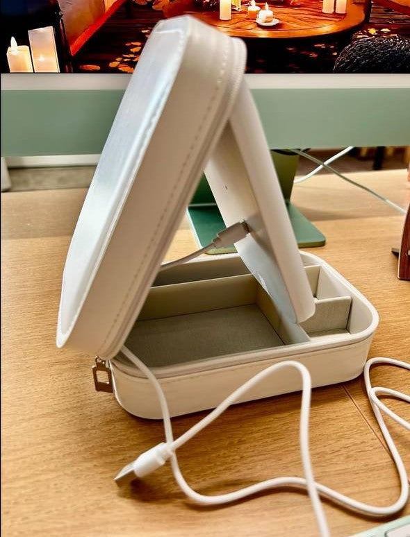 Le coffret bijou nouvelle génération pensé pour la femme moderne. Son miroir LED tactile haute luminosité sublime chaque détail de votre beauté, même dans la pénombre. Grâce à ses compartiments multiples intelligents, chaque bijou trouve sa place, fini les chaînes emmêlées et les boucles perdues. Compacte, portable et rechargeable par USB, elle vous accompagne partout, du dressing au voyage. Un design raffiné et premium pour protéger vos trésors avec style.