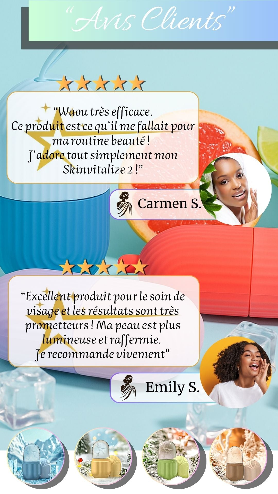 Olivia (USA) 09/2025Acheteur VérifiéAchetez pour votre femmeJ'adore mettre de l'aloe vera dans l'eau pendant la nuit et mettre de la glace sur mon visage le matin. Cela m'aide à me réveiller et j'ai remarqué une énorme différence sur ma peau. Ce produit est absolument incroyable ! ! J'ai vu des critiques selon lesquelles les gens avaient du mal à retirer la partie supérieure après qu'elle ait été congelée, mais il faut mouiller un peu le couvercle avant de l'enlever. C'est super facile à enlever pour moi après que je l'ai faitSkinVitalize 2 Rouleau à glace Cela vous a-t-il été utile? 0 0