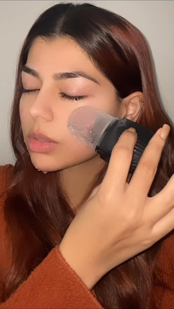 Passez délicatement le rouleau à glace sur votre visage en effectuant des mouvements circulaires ou de haut en bas, en insistant sur les zones à problèmes comme les pores dilatés ou les rougeurs.